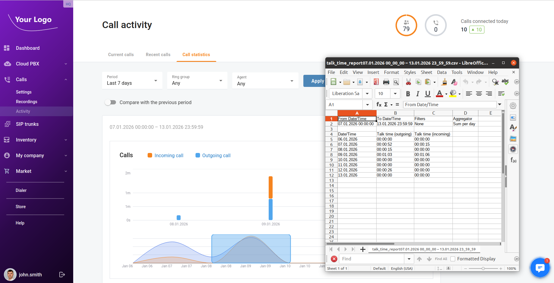 • ICAP-2735: Let users download a total talk time report