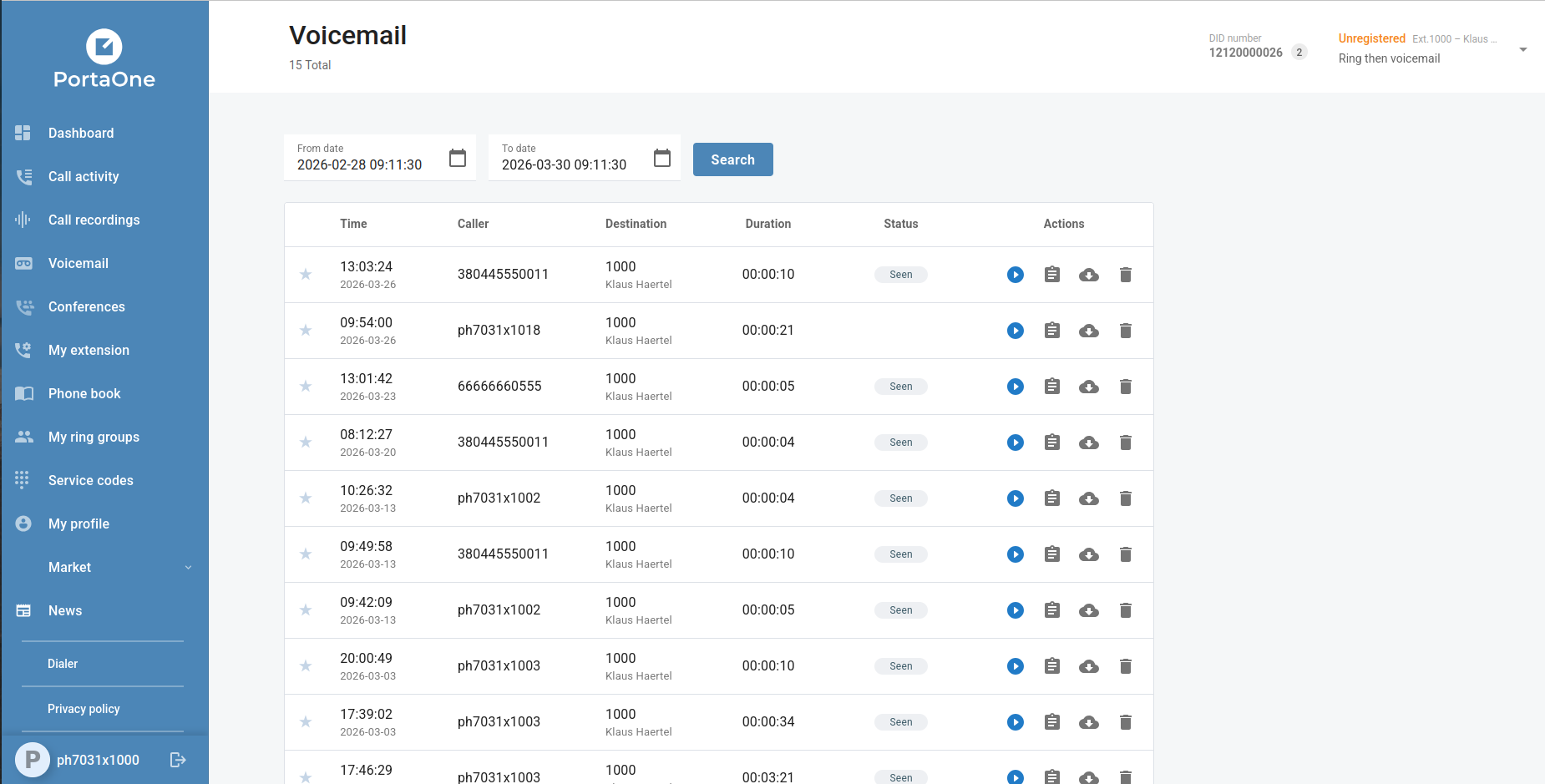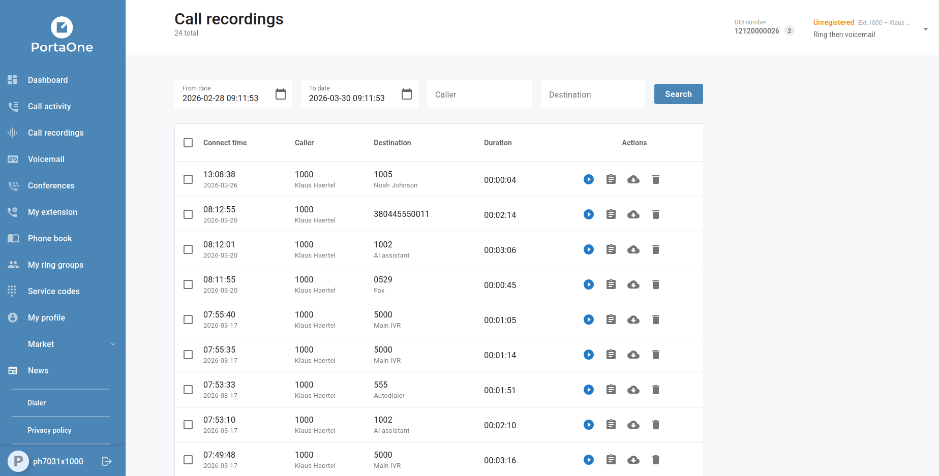Branch office customers can now edit extension names and DID number assignments directly from the extension settings, without requiring a PortaBilling operator to make the change. This self-service capability reduces the time it takes to onboard new staff or update seat assignments across branch locations.