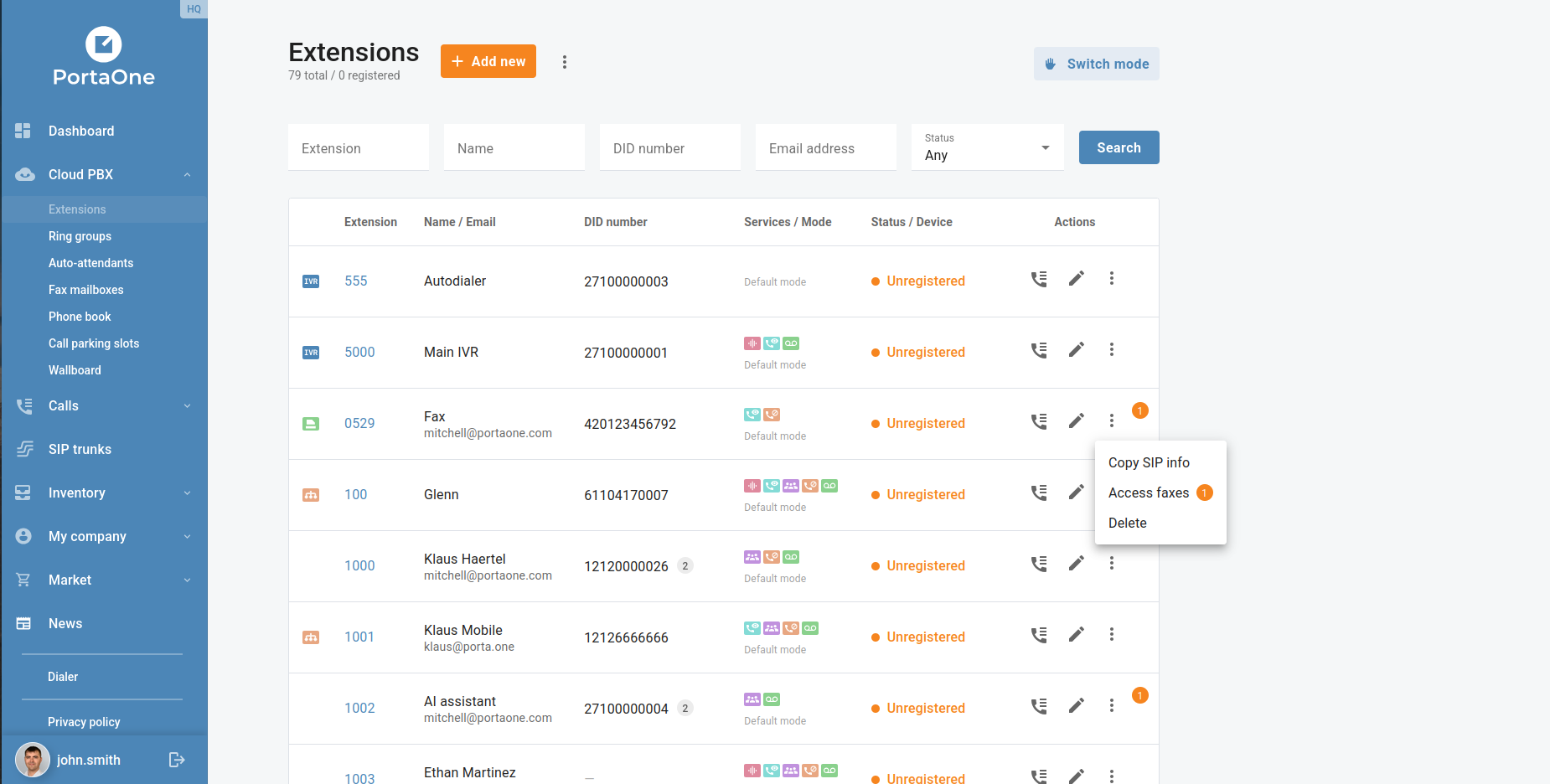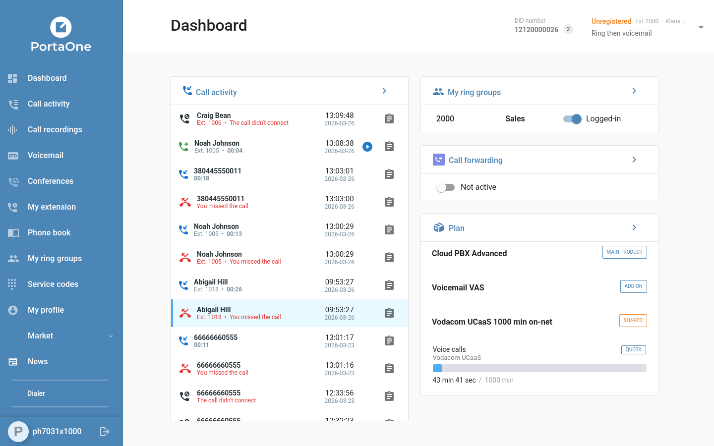 Branch office customers can now edit extension names and DID number assignments directly from the extension settings, without requiring a PortaBilling operator to make the change. This self-service capability reduces the time it takes to onboard new staff or update seat assignments across branch locations.