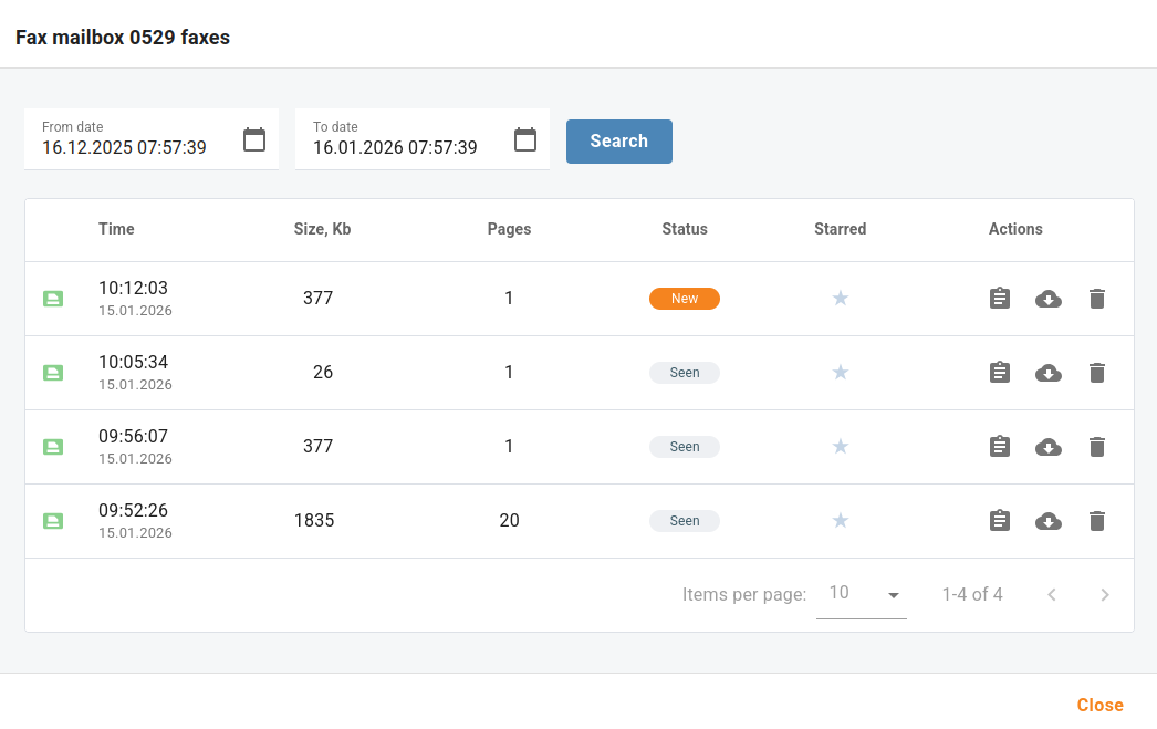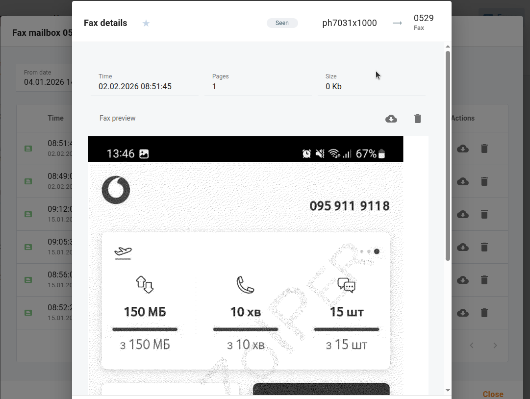 Customers can now browse, preview, and manage their incoming faxes directly from the portal. Fax messages are accessible from the fax mailbox, complete with document preview and download — no third-party email client required. Fax mailboxes are managed from the Cloud PBX → Fax mailboxes and Cloud PBX → Extensions menus, and can be assigned to DID numbers as needed.